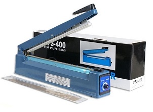 Μηχανή θερμοκόλλησης για κλείσιμο πλαστικών σακουλών. Ιδανική για συσκευασία διαφόρων αντικειμένων. Σφραγίζει εύκολα οποιοδήποτε τύπο πλαστικής σακούλας ( PE/PP ).